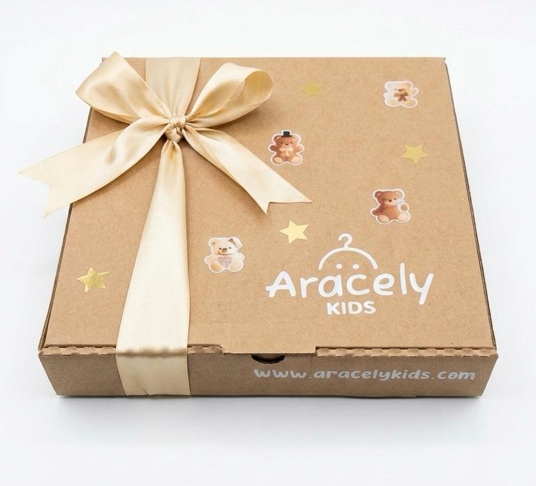 Caja de cartón tipo pizza para regalo, con listón en varios colores y stickers de varios diseños ideales para cada ocasión.