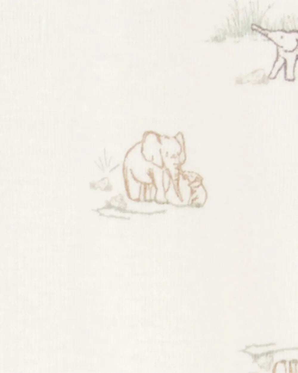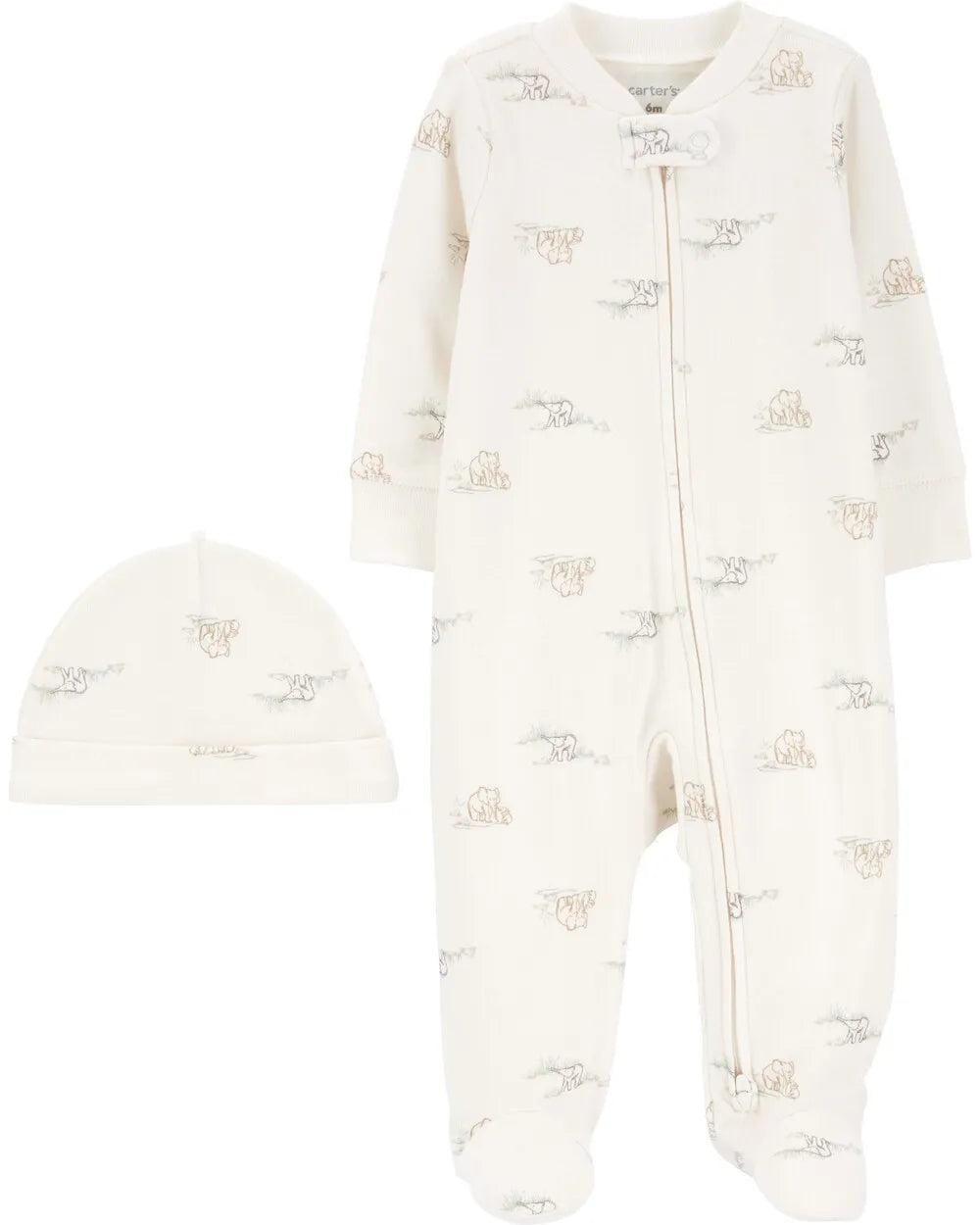 Mameluco de algodón con gorro para niña o niño marca Carter's, cierre hasta el tobillo y color beige con estampado de elefantes.