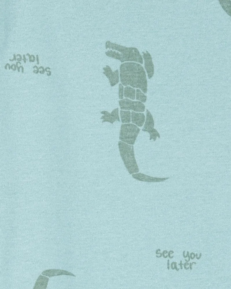 Pijamas de 2 piezas de algodón para niño marca Carter´s, color verde aqua y estampado de cocodrilos.
