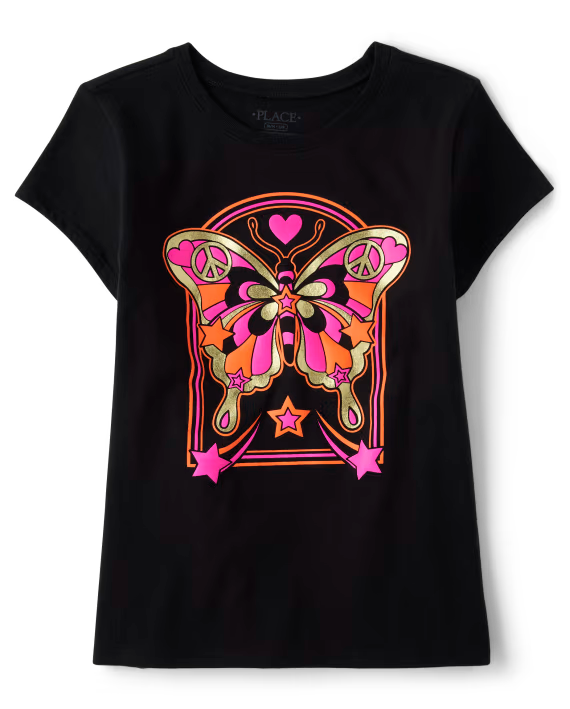 Playera de algodón para niña marca Children's Place, color negro, estampado de mariposa y fantasmas, ideal para Halloween.