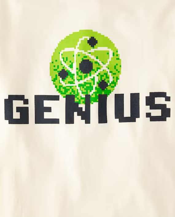 Playera de algodón para niño marca Children's Place. Color beige y estampado de símbolo de ciencias.