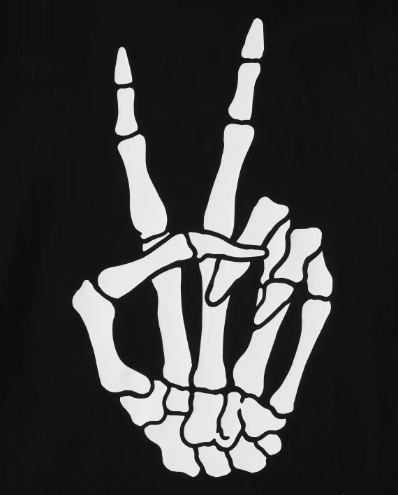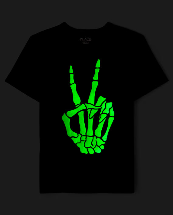 Playera de algodón para niño marca Children's Place. cuello redondo, estampado de mano de calavera que brilla en la oscuridad, ideal para Halloween.