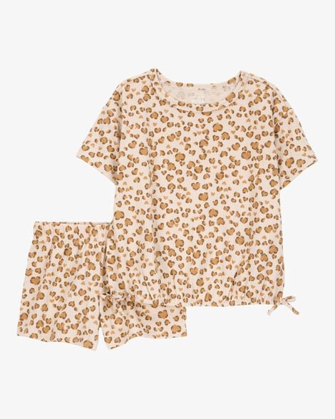 Set de 2 piezas de algodón para niña marca Carter's, cintura elástica, detalle de 2 nudos en la parte inferior de la blusa, estampado de leopardo.