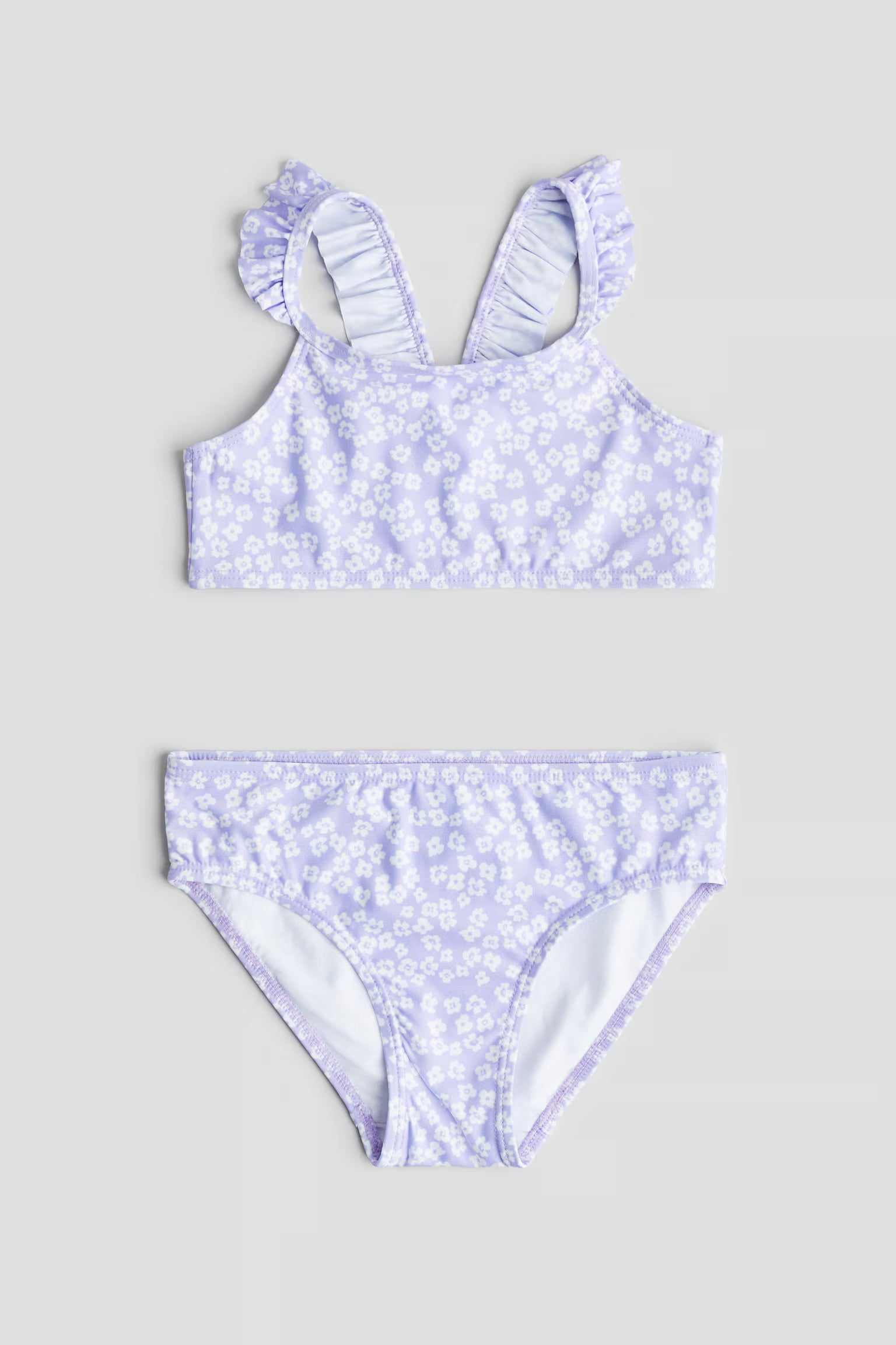 Bikini de 2 piezas con olán para niña marca H&M, con estampado lila floreado