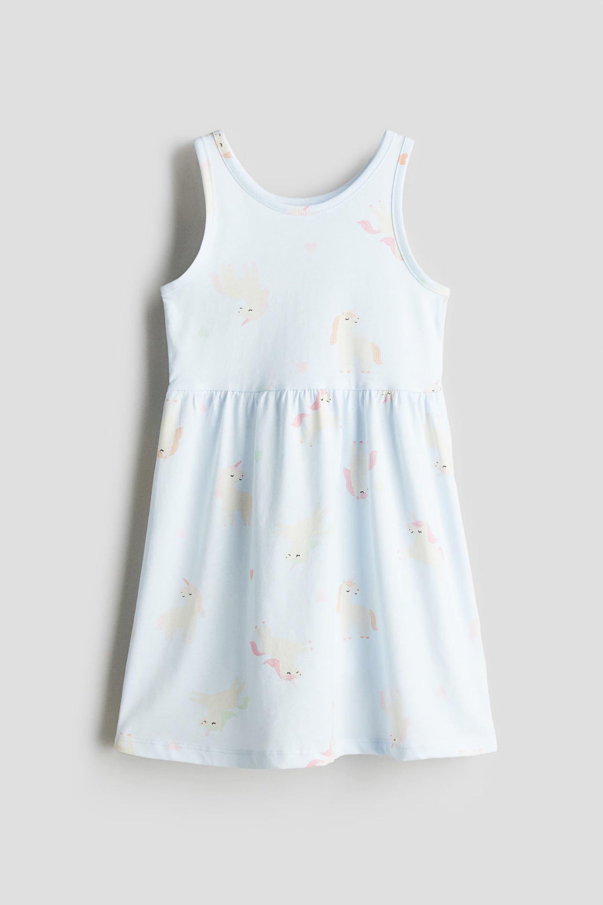Vestido de algodón para niña marca H&M, muy fresco, color azul cielo con estampado de unicornios.